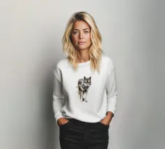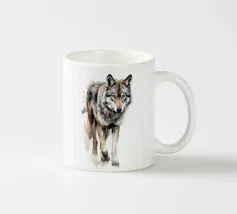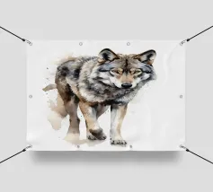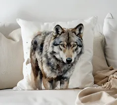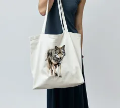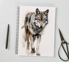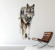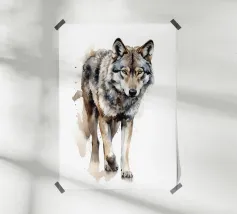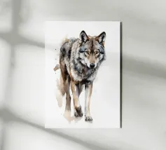 Un ritratto minimalista ad acquerello di un lupo in toni beige tenui cattura la grazia e la selvaticità della natura. Questa elegante illustrazione mostra il lupo in movimento e porta la bellezza della fauna selvatica in ogni stanza.