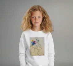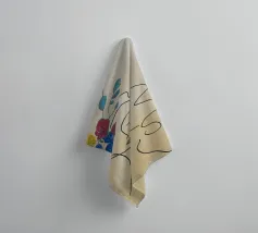 Questo dipinto su sfondo giallo pastello è morbido e rilassante. I fiori colorati contrastano con la semplicità del disegno, creando una sottile armonia.