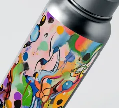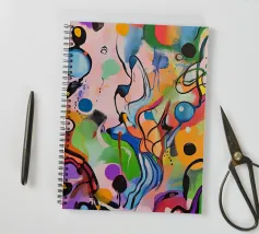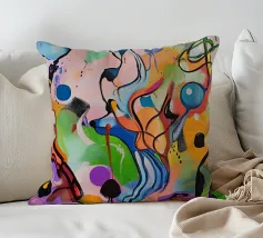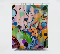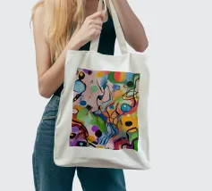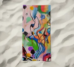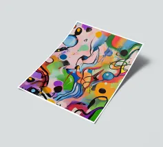 La composizione di immagini astratte combina colori vivaci e linee ondulate in un design moderno e surreale che ispira l'immaginazione e celebra la cultura pop.