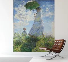 In questa luminosa scena all'aperto, Claude Monet immortala la moglie Camille Monet e il loro giovane figlio Jean mentre passeggiano in un campo illuminato dal sole ad Argenteuil. Claude Monet, Madame Monet e suo figlio, dipinto del 1875, Impressionismo, arte moderna francese, famiglia Monet, pittura plein air, Camille Monet, Jean Monet, ombrellone nell'arte, National Gallery of Art, Argenteuil, madre e figlio nell'arte, luce e atmosfera, capolavoro del XIX secolo, opera famosa di Monet
