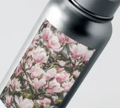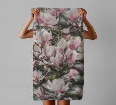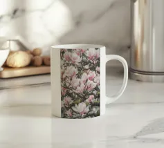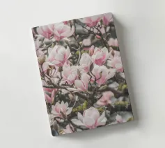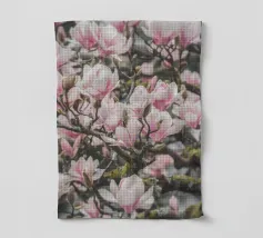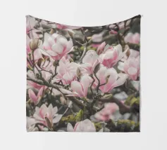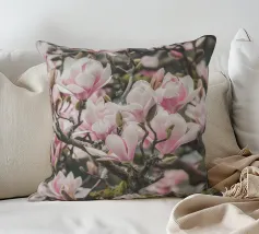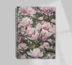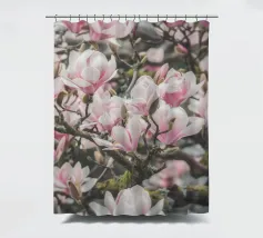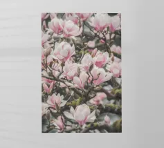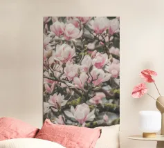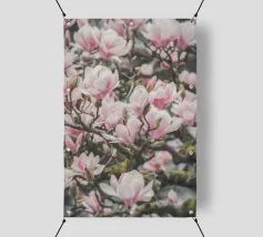 Delicati fiori di magnolia rosa e rosa sbocciano in pieno splendore, catturati in un romantico primo piano che celebra la bellezza naturale e la primavera dell'arte botanica.