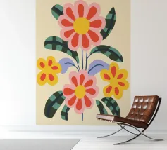 con un affascinante motivo floreale retrò in colori caldi come il rosso, il giallo e il rosa, combinati con il verde e il blu. Questo disegno irradia allegria ed eleganza e si abbina perfettamente a stili di interni sia moderni che nostalgici. Ideale per prodotti come murales, tazze, cuscini o cover per cellulari: un'aggiunta di stile a qualsiasi casa. Perfetto come regalo o per aggiungere un tocco di natura alla propria casa.