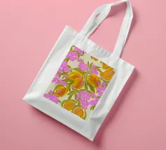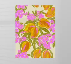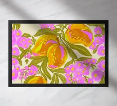 Illustrazione ad acquerello di manghi esotici tropicali e fiori vivaci.