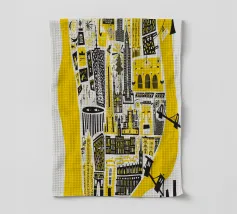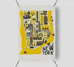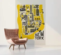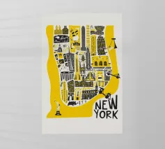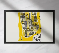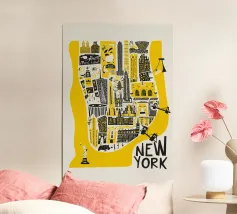 Questa illustrazione della mappa di Manhattan fa rivivere lo spirito della città di New York con il suo design giocoso e i suoi audaci colori giallo e nero. Caratterizzata da noti punti di riferimento come la Statua della Libertà e l'Empire State Building, è un modo divertente per aggiungere un po' di carattere newyorkese alla vostra casa o al vostro ufficio. Disponibile in varie dimensioni per adattarsi al vostro spazio.