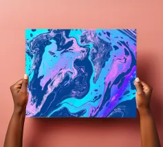 marmo astratto audace dichiarazione massimalismo eclettico resina arte colorata blu onde casuale