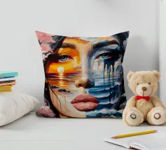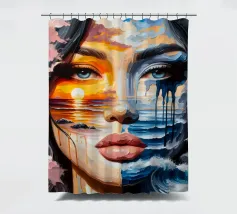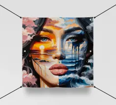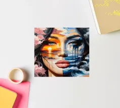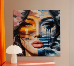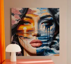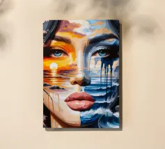 Pittura di paesaggio marino Di donna, onde e tramonto.