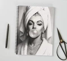 Ritratto di Marilyn che soffia una gomma da masticare in bianco e nero.