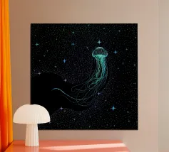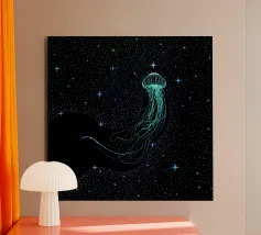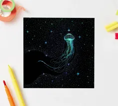 una medusa che galleggia nell'oceano cosmico, tra le stelle. Ci ricorda che tutti noi abbiamo polvere di stelle.