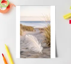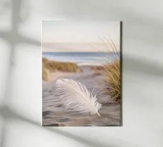 🌾 Leggerezza in riva al mare - piuma bianca sulla sabbia. Questo delicato motivo da spiaggia unisce tranquillità, libertà e natura. La morbida piuma sulla sabbia della duna di fronte al mare blu cattura la sensazione di estate, vento e leggerezza. Ideale come poster, tela o murale per il soggiorno, la camera da letto o il bagno. Perfetto per gli amanti del Mare del Nord e del Mar Baltico, per gli appassionati di arredamento marittimo e di vita costiera scandinava. 🤍🌊