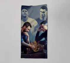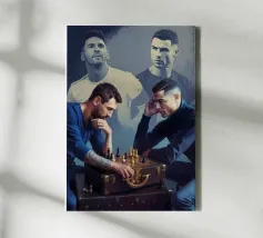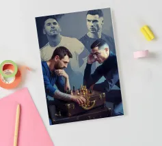 Messi vs. Ronaldo: l'eterna rivalità 🐐 Celebrate i due titani del calcio con questa accattivante opera d'arte. Messi e Ronaldo, leggende della Champions League, si affrontano in una battaglia a scacchi che non ha precedenti. Chi è il vero campione? Quest'opera accende il dibattito e celebra le loro incredibili carriere calcistiche.