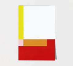 Questa stampa d'arte astratta presenta una vivace combinazione di colori rossi, gialli e pastello. Le forme geometriche si uniscono per creare un quadro d'insieme potente ma armonioso. L'azzurro sul lato destro crea un effetto di equilibrio, mentre i colori caldi nella parte inferiore irradiano energia e calore. Quest'opera d'arte moderna è ideale per aggiungere un tocco di colore alla casa o all'ufficio.