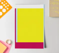 Questa stampa d'arte moderna colpisce per la sua chiara geometria e la vivace combinazione di colori. Con un giallo deciso, un rosso bordeaux e un accenno di azzurro, questo disegno astratto cattura immediatamente l'attenzione. L'approccio minimalista conferisce all'immagine un equilibrio rasserenante, mentre i colori vivaci creano un interessante contrasto. Perfetto per gli amanti dell'arte contemporanea che desiderano aggiungere un elemento elegante e colorato alle loro stanze.
