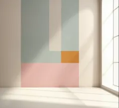 Questa stampa d'arte incarna l'eleganza minimalista con la sua struttura chiara e la combinazione di colori tenui. Il mix di blu delicato, rosa tenue, una forte tonalità arancione e una superficie bianca crea una composizione equilibrata che irradia calma e modernità allo stesso tempo. Questo murale si integra perfettamente negli spazi abitativi moderni e crea accenti sottili senza essere invadente. Ideale per gli amanti dell'arte contemporanea e dell'interior design minimalista che cercano una decorazione sottile ma espressiva.