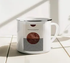 Opera d'arte geometrica minimalista con linee nere e un semicerchio di colore marrone con texture, su uno sfondo beige neutro e morbido.