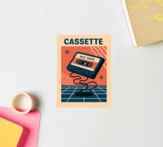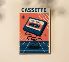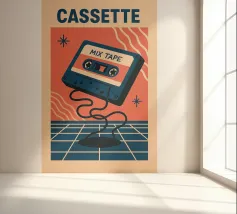 Rendete omaggio all'epoca delle compilation fatte in casa con questo poster "CASSETTE MIX TAPE" dal design audace. Una cassetta fluttuante, colori saturi e uno sfondo retro-futuristico: tutto ciò che serve per vibrare al ritmo dei vostri ricordi musicali. Un pezzo decorativo che trasuda amore per il vintage.