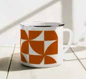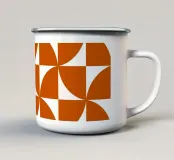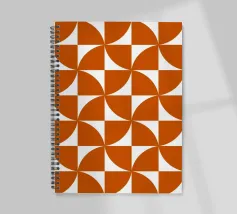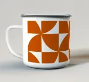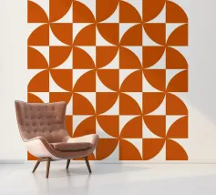 Un audace motivo geometrico influenzato dall'estetica Bauhaus. Con le sue forme a quarto di cerchio in un vivace colore arancione, questo disegno aggiunge calore, energia e un tocco retro-moderno a qualsiasi ambiente.