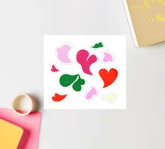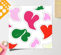 Moderno motivo per San Valentino con cuori traballanti disegnati a mano. I colori vivaci e le forme irregolari conferiscono a questo motivo un aspetto moderno.