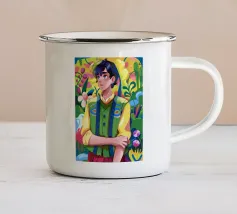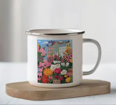 Questo dipinto mostra una persona con le mani sulla testa, circondata da un motivo a quadri e da elementi floreali. Lo sfondo è marrone e la posa suggerisce un momento di introspezione e di calma.