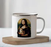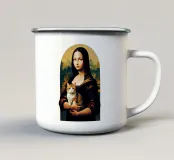 Una rivisitazione creativa del classico capolavoro, con Monna Lisa che tiene delicatamente in braccio un gatto. Un mix giocoso di arte senza tempo e immaginazione moderna.