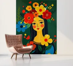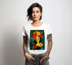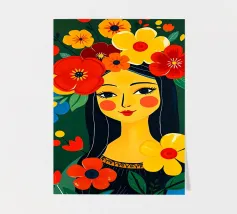 Quadro della Gioconda in stile boho floreale colorato.