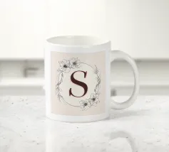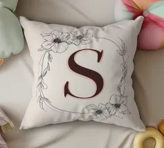 Questo elegante monogramma floreale presenta una delicata corona di fiori e foglie che circonda la lettera "S". La palette di colori pastello e i dettagli intricati creano un design romantico e senza tempo, perfetto per qualsiasi arredamento.