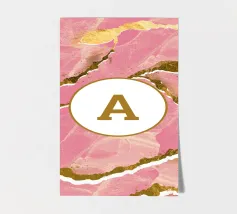 Un elegante disegno personalizzato con l'iniziale scelta in un elegante effetto marmo con toni di orchidea rosa e accenti d'oro scintillanti. Elegante, moderna e senza tempo, questa opera d'arte è un regalo perfetto o una dichiarazione unica per la vostra casa. Aggiungete la vostra iniziale per creare un pezzo unico che unisce la raffinatezza a un tocco di glamour.