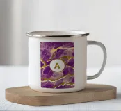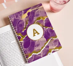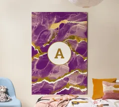 Un elegante disegno personalizzato con l'iniziale prescelta in un elegante effetto marmo con toni viola cosmici e accenti d'oro scintillanti. Elegante, moderna e senza tempo, questa opera d'arte è un regalo perfetto o una dichiarazione unica per la vostra casa. Aggiungete la vostra iniziale per creare un pezzo unico che unisce la raffinatezza a un tocco di glamour.