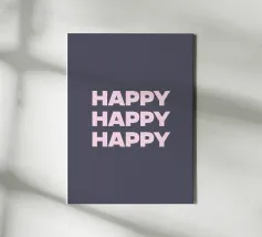 Triplo buon umore: questo poster minimalista con la parola "HAPPY" in rosa tenue su sfondo scuro è una chiara e moderna dichiarazione di buon umore. Perfetto per la camera da letto, il corridoio, la cucina o l'ufficio: un'idea discreta ed elegante per ogni giorno. Meno parole, più impatto.