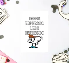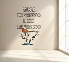Iniettate umorismo ed energia nel vostro spazio con questo allegro poster digitale che riporta la spiritosa frase "MORE ESPRESSO LESS DEPRESSO". Il testo è presentato in un carattere grassetto e delineato, con un'affascinante tazzina da caffè in stile retrò che fa il pollice in su. La tazzina, completa di occhietti e scarpette blu, aggiunge un tocco stravagante a questo pezzo motivazionale. Su uno sfondo bianco e pulito, questa stampa è perfetta per gli amanti del caffè e per chi apprezza le risate. Questo poster digitale di alta qualità, fornito a 7000x5000 pixel e 300 dpi, porta con sé l'eccellenza della grafica contemporanea.