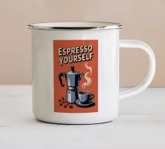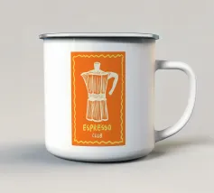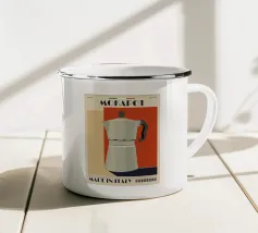In questa affascinante illustrazione retrò, la caffettiera della moka risplende di colori vivaci e incarna l'amore per l'espresso italiano. La scritta nostalgica "More Espresso" sottolinea perfettamente la passione per il caffè.