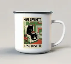Questa giocosa opera d'arte raffigura un gatto soddisfatto che si gode un abbondante piatto di spaghetti, irradiando conforto e umorismo. Con il suo stile retro comico e la frase spiritosa "Più spaghetti, meno rimpianti", ricorda di assaporare i semplici piaceri della vita. Perfetto per gli amanti del cibo, per gli appassionati di gatti e per tutti coloro che apprezzano una motivazione spensierata.