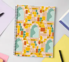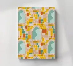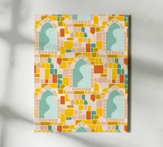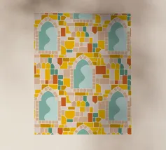 Un tocco di calore e fascino al vostro spazio con questo colorato motivo a mosaico ispirato alle finestre ad arco e alle pareti in pietra. Verdi tenui, gialli solari e terracotta si fondono magnificamente in questo giocoso disegno di piastrelle. Perfetto per aggiungere un'atmosfera accogliente e artigianale a qualsiasi ambiente.