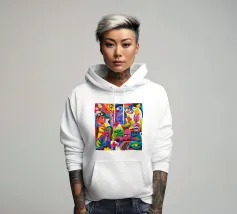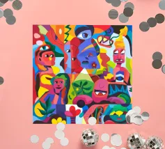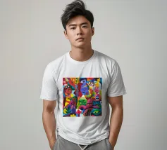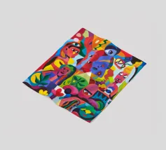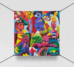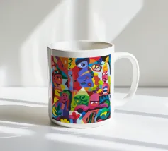 Colori vivaci e motivi intricati si uniscono per creare una composizione ipnotica e vibrante. Questo dipinto cattura la gioia e la complessità del design artistico.