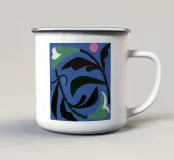 Questa opera d'arte presenta una composizione astratta con forme organiche e un mix di colori blu, verdi e bianchi. Le forme sono fluide e creano un senso di movimento.