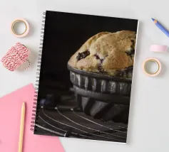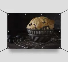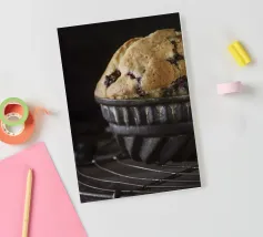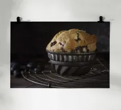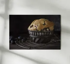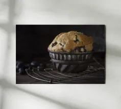 Muffin ai mirtilli in una piccola teglia su una vecchia rastrelliera da cucina