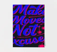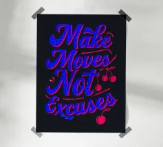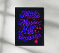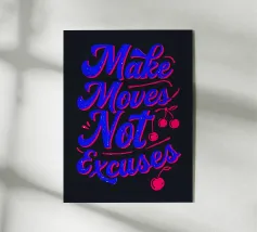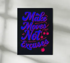 Questa opera d'arte tipografica vibrante e audace è un potente promemoria per agire e perseguire i propri obiettivi. I colori contrastanti e la tipografia energica creano un'opera dinamica e motivante che vi ispirerà a fare passi avanti e a lasciarvi alle spalle le scuse.