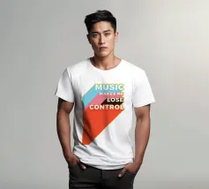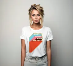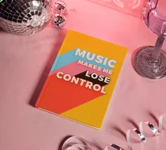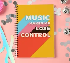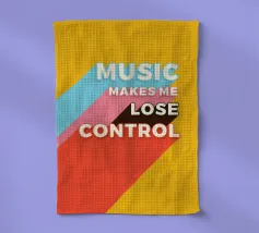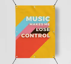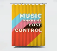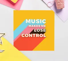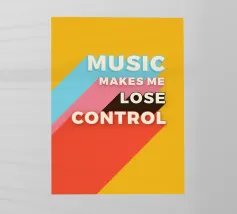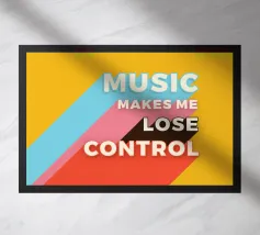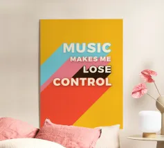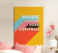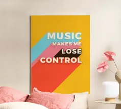 Un vivace design tipografico con la frase "Music Makes Me Lose Control" (La musica mi fa perdere il controllo) in grassetto in lettere bianche con un effetto ombra 3D, posizionato su blocchi di colore diagonali di giallo, rosa, rosso, blu e nero. Un design energico di ispirazione retrò, perfetto per gli amanti della musica, i DJ e tutti coloro che vivono per il ritmo. Ideale per opere d'arte da parete, poster, magliette e decorazioni per la casa che si distinguono.