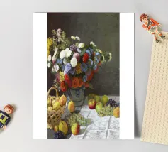 "Natura morta con fiori e frutta (1869) di Claude Monet" - Impressionista Arte floreale, Stampa campagna francese, Pittura botanica d'epoca