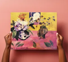 Natura morta con vaso a forma di testa e xilografia giapponese di Paul Gauguin
