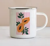 Una delicata e moderna natura morta di una papaya a fette su uno sfondo rosa tenue. La composizione semplice e i colori delicati creano un'illustrazione di frutta elegante e fresca.