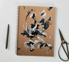 Quest'opera è realizzata su un foglio di cartone senza colorazione, lasciando visibili sullo sfondo le fibre di legno che la compongono. L'obiettivo è quello di presentare un'opera dipinta che mantenga un aspetto grezzo, offrendo un supporto che evochi la sua origine naturale. Il risultato è un'armonia e una maggiore facilità di integrazione in diversi stili di arredamento.