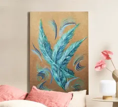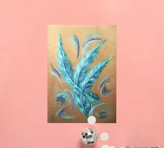 Quest'opera è realizzata su un foglio di cartone senza colorazione, lasciando visibili sullo sfondo le fibre di legno che la compongono. L'obiettivo è quello di presentare un'opera dipinta che mantenga un aspetto grezzo, offrendo un supporto che evochi la sua origine naturale. Il risultato è un'armonia e una maggiore facilità di integrazione in diversi stili di arredamento.