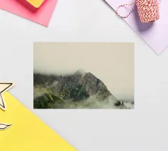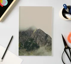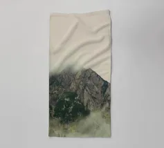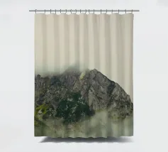 Morbide nuvole argentate si muovono tra le cime, offuscandone i contorni aspri e creando un'aria di mistero. La nebbia fresca si aggrappa ai pendii, intrecciandosi tra i pini e le scogliere rocciose. In lontananza, i contorni delle creste sfumano nel cielo pallido, come se le montagne si dissolvessero nella luce del mattino.