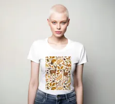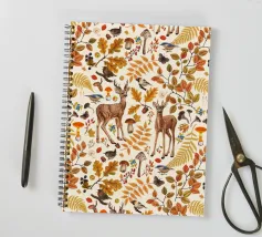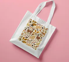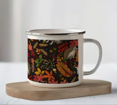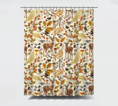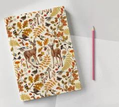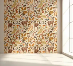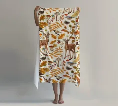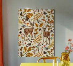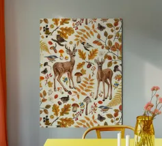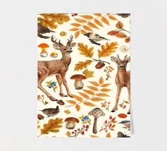 Godetevi la serena bellezza di questo motivo autunnale dipinto con cervi, foglie colorate, bacche e funghi.