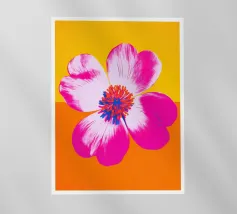 Quest'opera è un omaggio elettrizzante alla pop art, in cui le nature morte floreali vengono ridefinite. I colori radicalmente saturi - un rosa neon brillante per i petali, accentuato da un blu elettrico al centro, su uno sfondo spezzato di giallo brillante e arancione intenso - creano un'intensità quasi surreale. L'estremo contrasto cromatico e l'aspetto quasi serigrafico sono chiare allusioni alle iconiche rappresentazioni di Andy Warhol. L'effetto ipnotico è immediato: l'energica immagine vibra e irradia una sfrenata gioia di vivere.