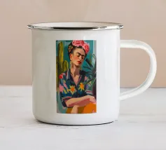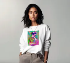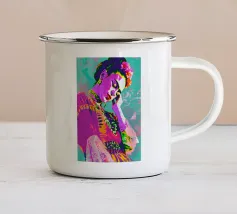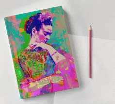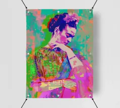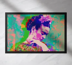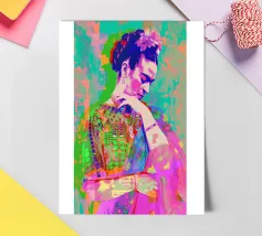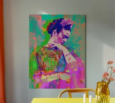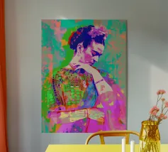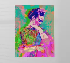 Questo vibrante e colorato ritratto di Frida Kahlo combina pop art e post-impressionismo in una composizione unica. Con colori al neon e audaci elementi grafici, cattura l'essenza della cultura e del folklore messicano in modo moderno.