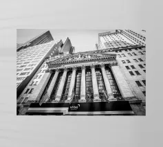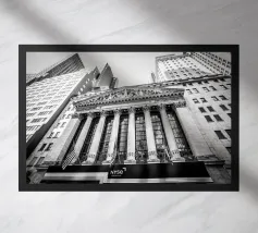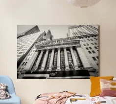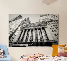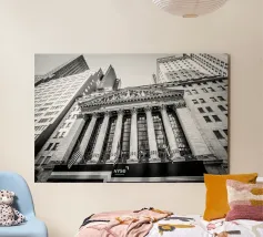 Catturate l'essenza di uno dei centri finanziari del mondo con questa suggestiva fotografia della Borsa di New York. L'architettura classica e la vivace energia di Wall Street conferiscono un tocco di eleganza storica a qualsiasi ambiente. Perfetta per chi ama lo spirito dinamico della vita cittadina, questa immagine aggiunge profondità e carattere al vostro spazio. Che si tratti di un ufficio o di un salotto, immergetevi nell'atmosfera iconica di New York con questo design accattivante.