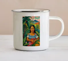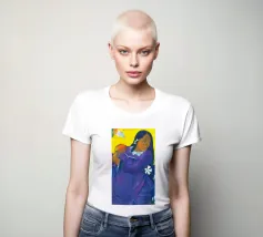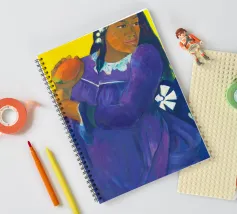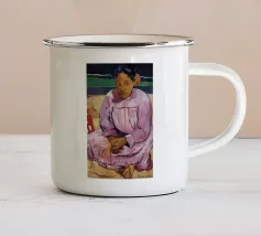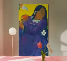 Dipinto durante il primo soggiorno di Gauguin a Tahiti, Nō te vi - che si traduce in "Del frutto" - raffigura una giovane donna serena seduta con un mango maturo in mano. Con contorni decisi, ricche tonalità della terra e forme semplificate, Gauguin trasmette sia la sensualità che la tranquillità della vita isolana.Paul Gauguin, Nō te vi, Donna con mango, dipinto del 1892, periodo tahitiano, post-impressionismo, ritratto polinesiano, Gauguin a Tahiti, Baltimore Museum of Art, esotismo nell'arte, modernista francese, Gauguin 1890, figura femminile simbolica, pittura culturale, primit
