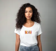 Il nome "Noah" è fatto di pennellate colorate e allegre.