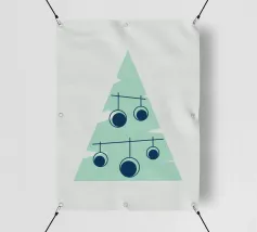 Albero di Natale dipinto in modo minimale con decorazioni semplici e stilizzate, bella illustrazione perfetta per un regalo di Natale o per la vostra decorazione interna natalizia. Toni freddi e invernali.